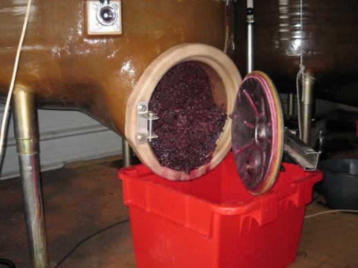 プレスした後、ケーキのようにブドウのカスが残ります。