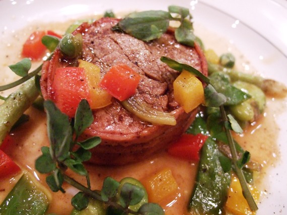 ベーコンを巻いた仔牛フィレ肉のポワレ