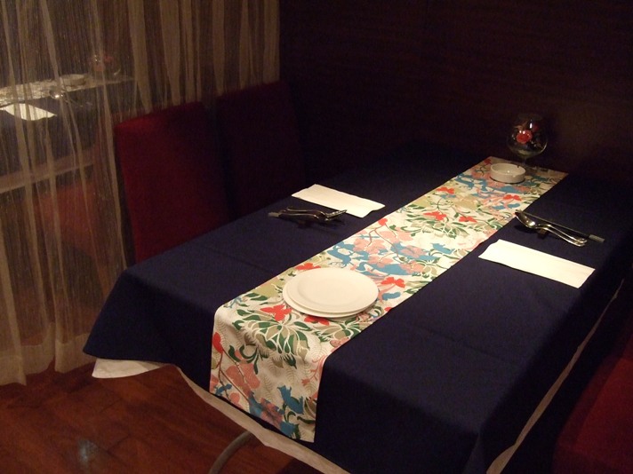 少し前は赤いクロスをひいてました。